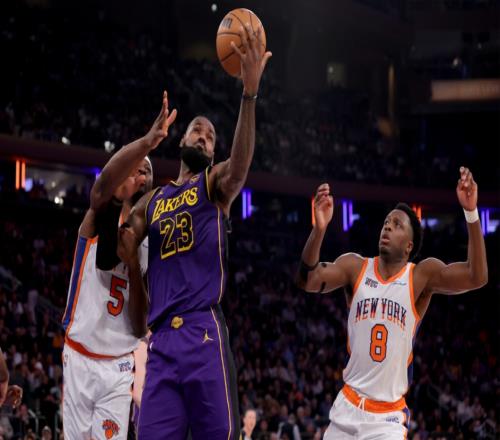 尼克斯3人20+擒湖人6连胜东契奇30+15+8勒布朗22+5+6